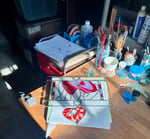 3.5”x4.5” Fremont mouth blown glass heart with bevel center and 3”antique crystal dangle