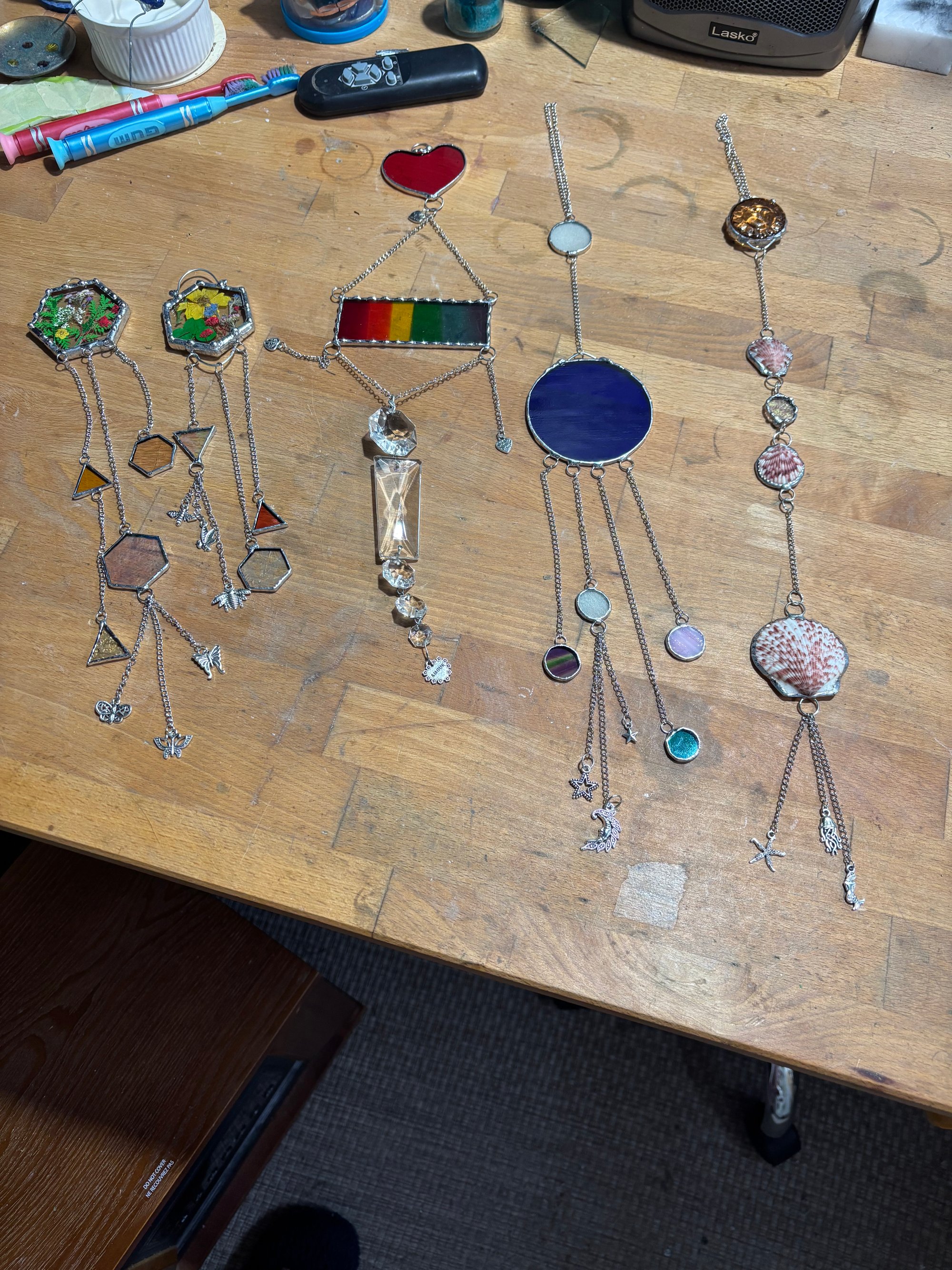 Celestial - multiple rounds pieces of glass including glow glass and charms of moon and stars