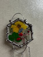 Hexagon with dried flowers with bee charms