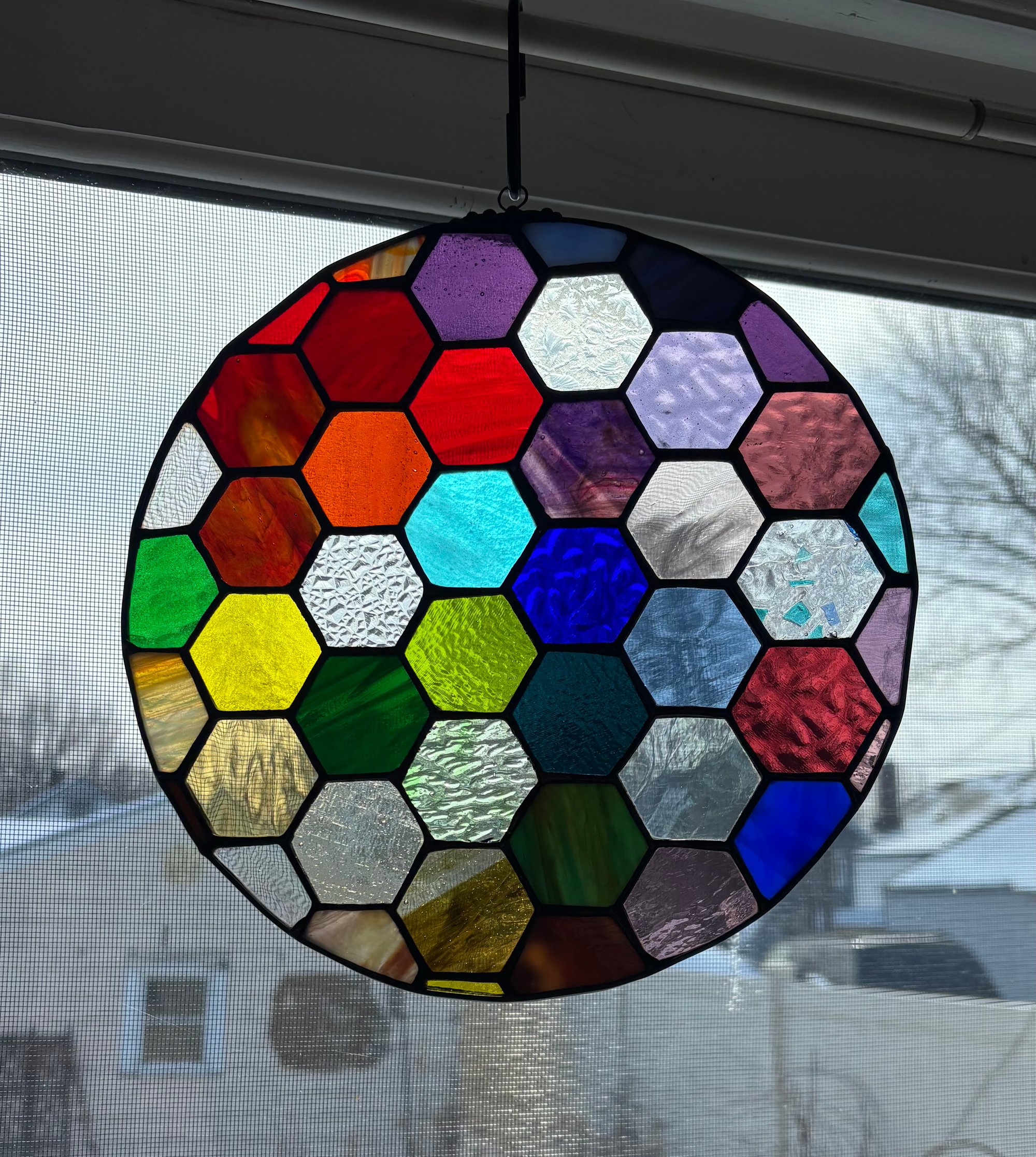 9” round with multiple colors of hexagons PRIDE